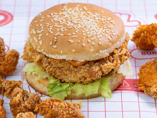 Two crispy chicken burgers stacked with fresh lettuce, creamy mayo, and all the crunch you crave.